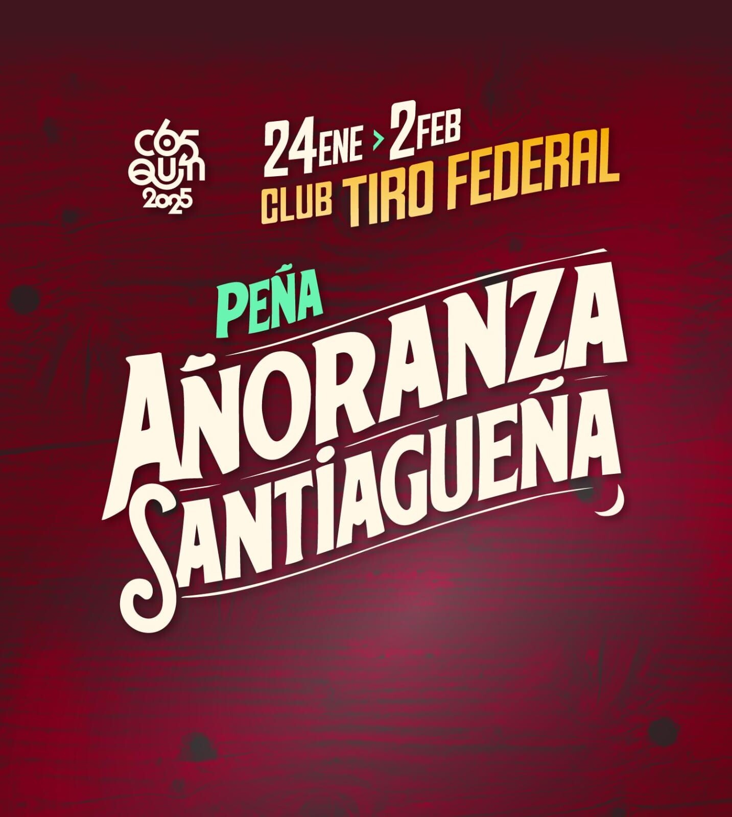 Del 24 de enero al 2 de febrero “Añoranza Santiagueña” enciende la propuesta peñera en Cosquín. En el club Tiro Federal, Avenida San Martín 1166, el tradicional espacio que alberga las mejores peñas de la ciudad, le da la bienvenida este 2025 a lo que será sin dudas la propuesta folclórica de la temporada.