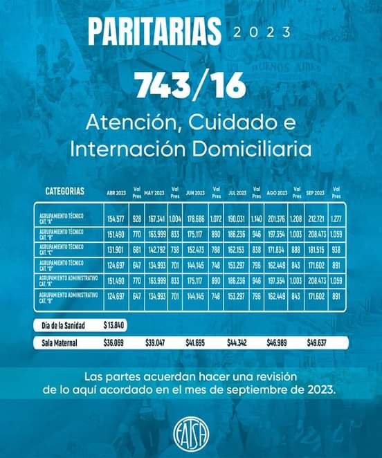 Jose Arce- compañeros Les informamos que en el día de hoy hemos arribado a un nuevo acuerdo de actualización salarial de todos los Convenios del Sector Asistencial, correspondiente a la paritaria 2023.