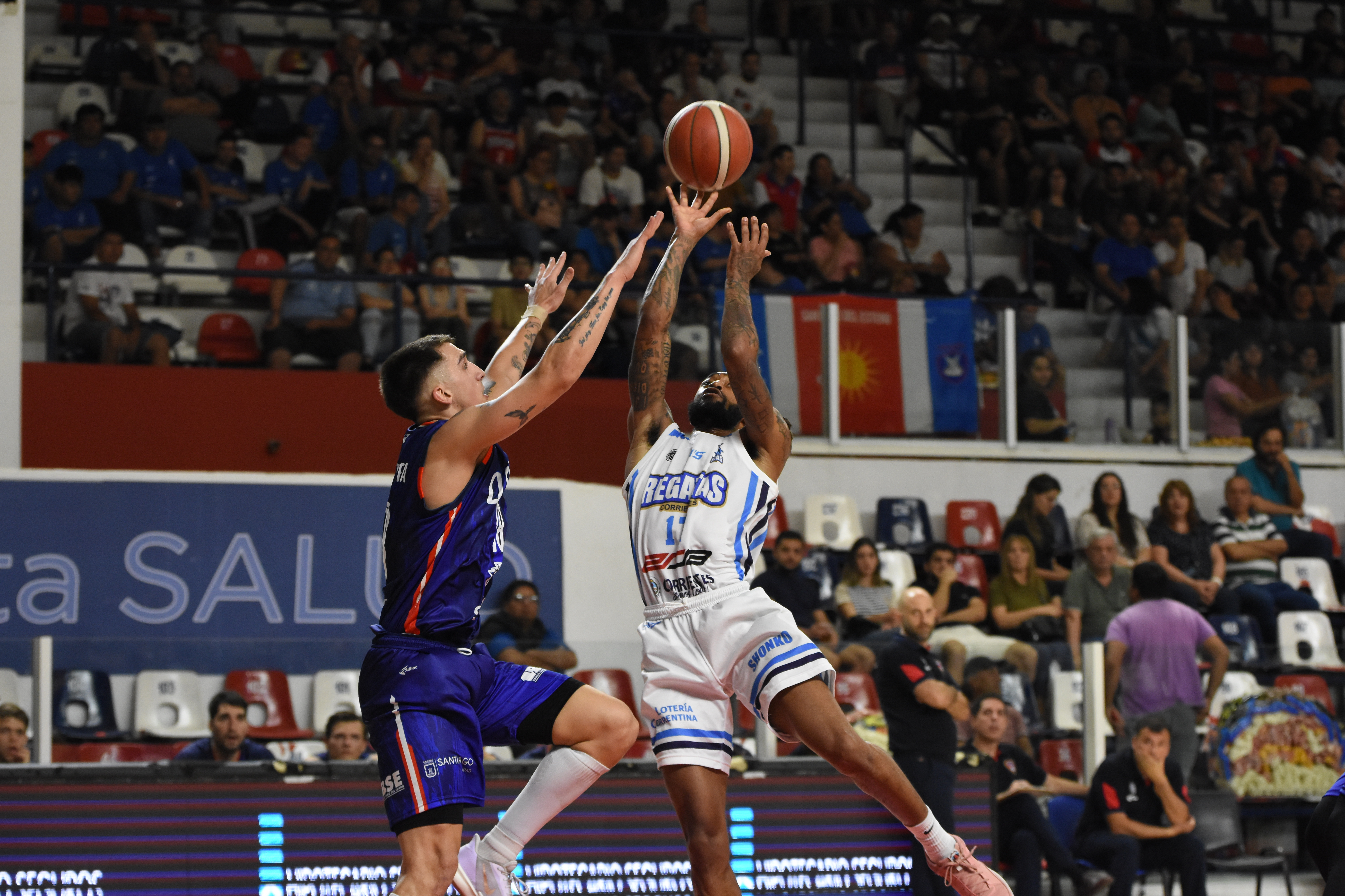 Tábarez con tres bombas abría el segmento final para los santiagueños. Regatas en cinco minutos solamente conseguía cinco tantos. Gramajo siguió intentando del lado visitante, pero Brussino contestó a larga distancia. Los minutos pasaron y el campeón de América controló el cierre con nuevos triples de Tábarez y Romano para imponerse 103 a 85. Patricio Tábarez fue clave con 18 puntos (4/4 en triples), o siguieron Nicolás Romano con 16 y 7 rebotes junto a los 12 tantos de Eduardo Vasirani, del otro lado 19 de Ivan Gramajo.