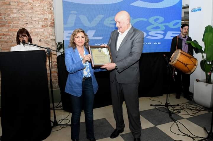 La jefa comunal acompaño al contador Ayuch durante el descubrieron de una imagen de Mama Antula, la primera Santa Argentina que estará ubicado en el salón de actos de la obra social, y además entregó una placa en reconocimiento a la labor de la entidad.