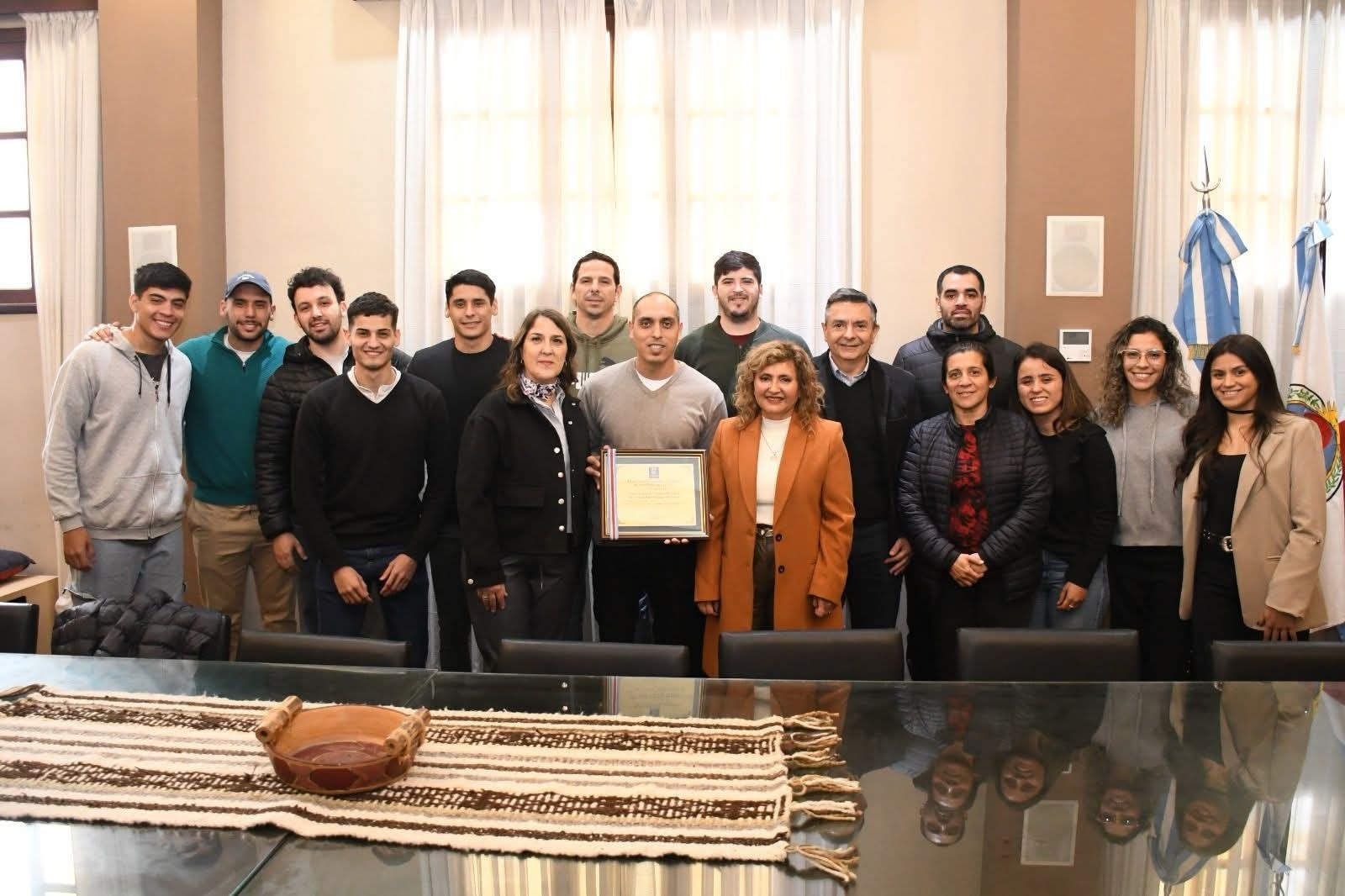 En nombre de los vecinos de la ciudad, la jefa comunal entregó una placa de reconocimiento al destacado equipo, que fue recibida por la presidenta de la Federación Santiagueña de Cestoball, Marcela Gigli.