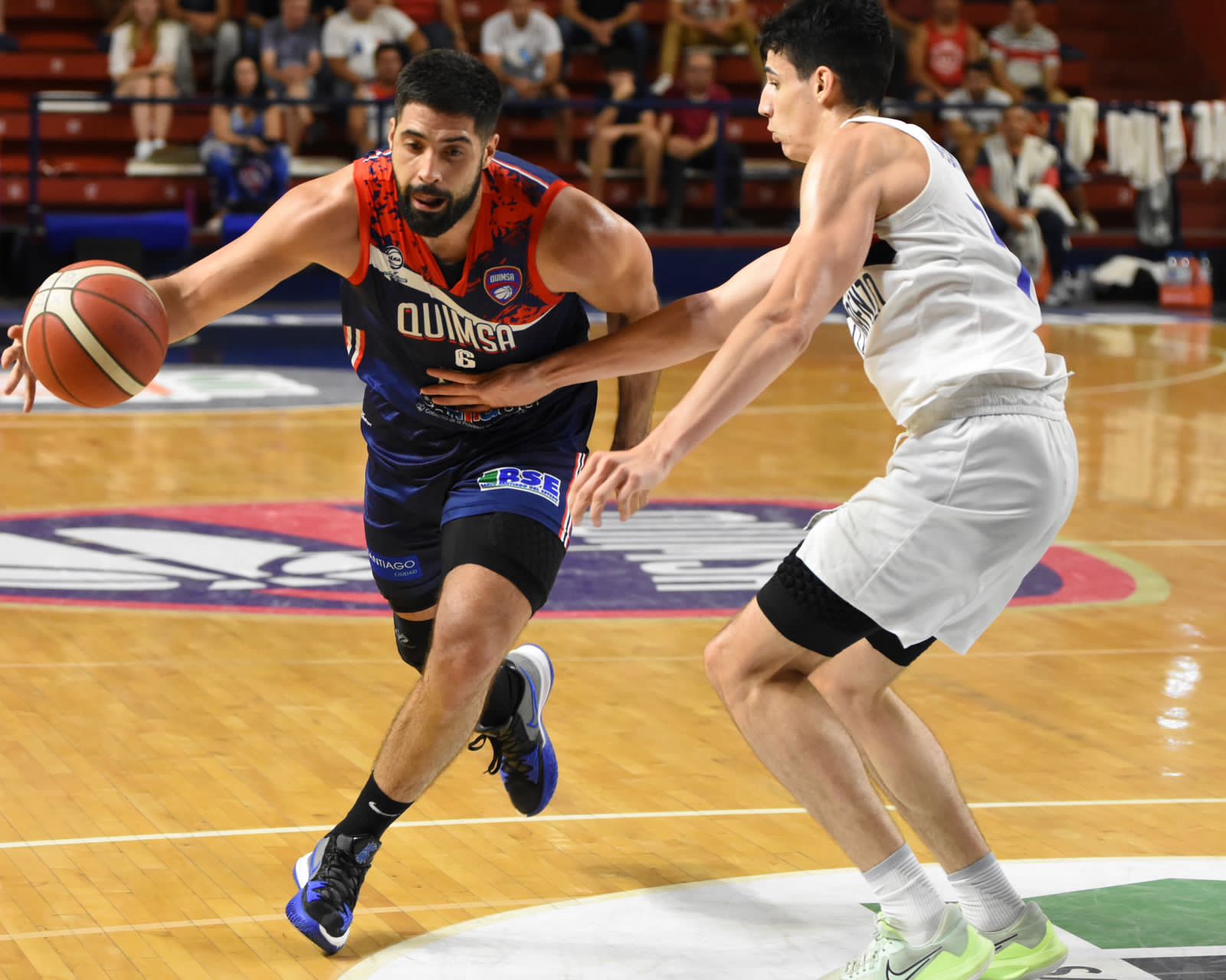 El comienzo del partido encontró al dueño de casa efectivo con un Robinson decidido hacía el aro y Brussino desde el perímetro, San Lorenzo encontraba algunos puntos con la experiencia de Marín y comenzaba a sentir las ausencias en el poste bajo (Aprea y Podestá por lesiones). Quimsa siguió sumando con Brussino de tres puntos y el buen ingreso de Baralle para llevarse el primer segmento 28/16 ante un rival que llegó a descontar sobre la bocina con una bomba de Pelorosso. En el segundo cuarto apareció Rutenberg para descontar en los de Boedo frente un equipo fusionado que bajaba sus porcentajes de campo hasta que llegaron los triples de Pérez Tapia, Baralle y Sánchez de forma consecutiva para irse al entretiempo liderando 45/33.